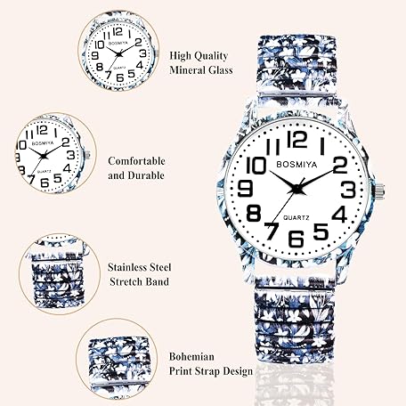 Sản phẩm OIDEA Stretch Band Watches for Women: Bohemia Flower Easy Reader Elastic Band Watch Large Face Big Number Analog Quartz Bracelet Watch Expansion Band Wristwatch đang được bán với giá ưu đãi là $12.6004 tại nước Mỹ.