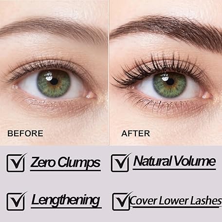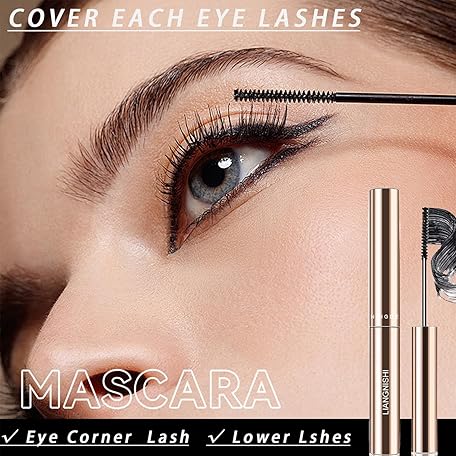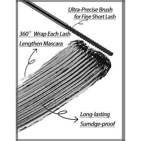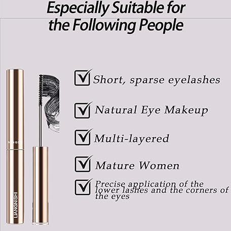 Okerker Black Mascara for Fine Short Lash & Older Women & Mulit-layered Lashes, Ultimate Length Volumizing Lower Bottom Lashes Mascara, Ultra-Precise Slim Adjustable Brush to Any Angle, Smudge-proof