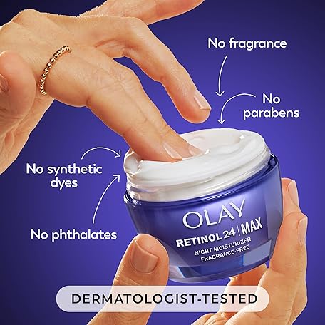 Thông tin sản phẩm Olay Retinol Face Moisturizer, 24 MAX Anti-Aging Night Cream for Women, Fragrance-Free, Non Greasy - Anti-Wrinkle, Smooth Fine Lines, Tightening, Hydrating Skin Care - Peptides, Glycerin, 1.7 Oz