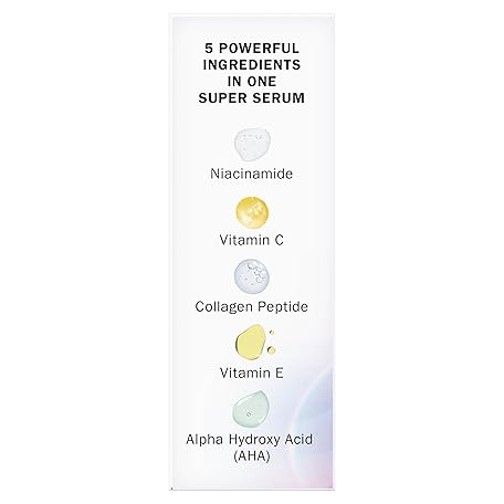 Thông tin sản phẩm Olay Super Serum - Niacinamide, Vitamin C & E, Collagen Peptide, AHA - 5-in-1 Skin Care Benefits for Face - Healthy Glow, Brightening, Hydrating, Smoothing, Firming, Evens Tone, Anti-Aging, 1.0 Oz