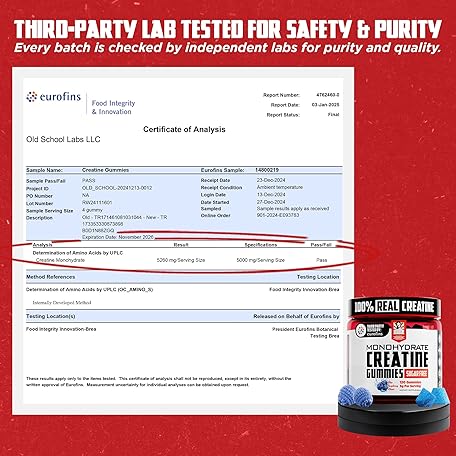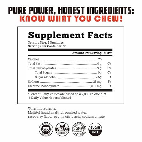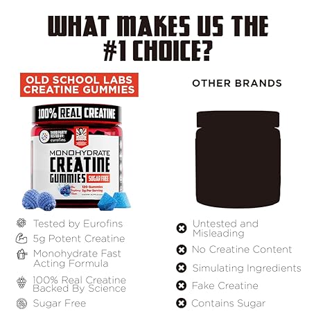 Old School Labs 5000mg Creatine Monohydrate Gummies, Optimized for Men and Women, Supports Lean Muscles & Recovery, Energy & Stamina - Real Creatine and Third Party Tested, 30 Servings, 120 Ct