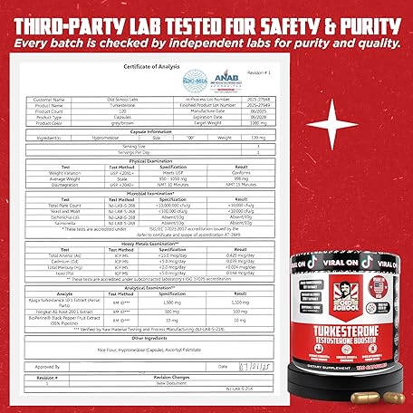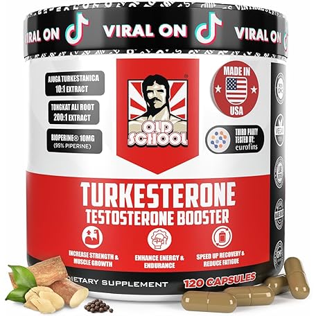 Thông tin sản phẩm Old School Labs Testosterone Supplement for Men – Turkesterone 1500mg Max Potency + Tongkat Ali & BioPerine® – Muscle Growth, Recovery, Drive & Stamina – 120 Caps, 40 Servings