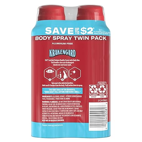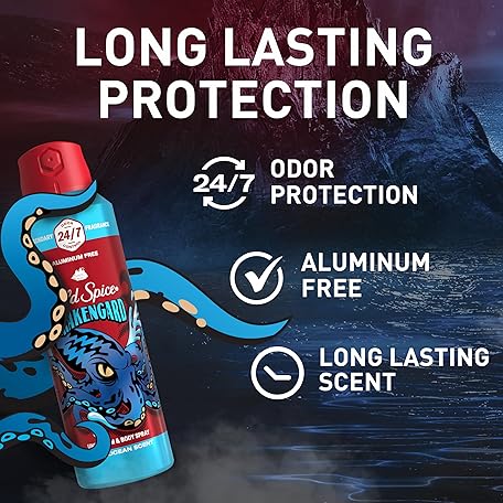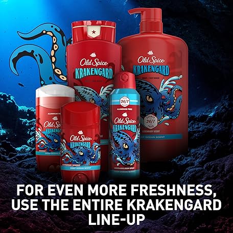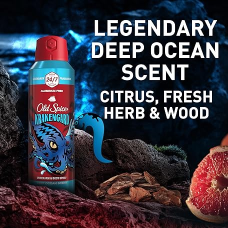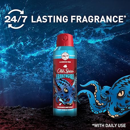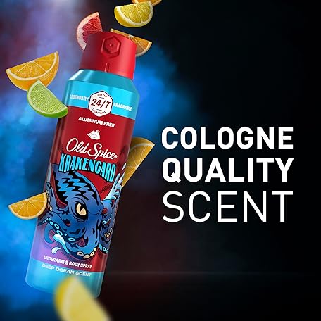 Thông tin sản phẩm Old Spice Aluminum Free Body Spray for Men, 24/7 Odor Protection, 24/7 Lasting Fragnance & Freshness, Cologne Quality Scent, Krakengard with Deep Ocean Scent, 5.1 oz (Pack of 2)