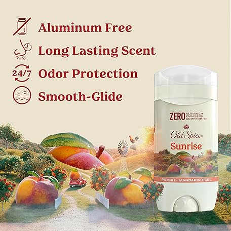 Thông tin sản phẩm Old Spice Aluminum Free Deodorant for Men, 24/7 Lasting Freshness & Long Lasting Scent, 24/7 Sweat & Odor Protection, Sunrise with Peach + Mandarin Peel Scent, 3.0 oz