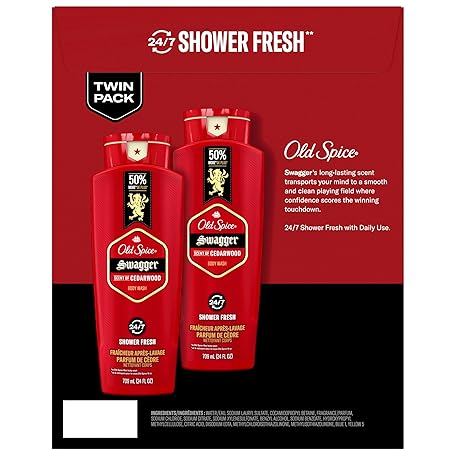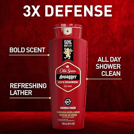 Thông tin sản phẩm Old Spice Refreshing Body Wash for Men, 3X Defense, 24/7 Shower Fresh with Long Lasting Scent, Red Collection, Swagger with Cedarwood Scent, 24 oz (Pack of 2)