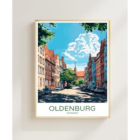 Oldenburg Germany Travel Poster – Historic Architecture, Charming Cityscape & Scenic River Views Wall Art for Home & Office Decor (Digital)