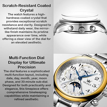 Thương hiệu OLEVS là cái tên nổi tiếng được rất nhiều khách hàng trên thế giới chọn lựa. Với kiểu dáng đẹp mắt, sang trọng, sản phẩm OLEVS Automatic Watches for Men Multi Calendar Moonphase with 3ATM Waterproof Business Classic Luxury Wrist Watch là sự lựa chọn hoàn hảo nếu bạn đang tìm mua một món cho riêng mình.