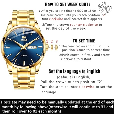 Thông tin sản phẩm OLEVS Classic Men Watches with Date,Stainless Steel Man Watch with Date, Bussiness Watches for Men,Luminous Quartz Mens Watches Black/White/Blue/Gold, Waterproof Male Watch with Week