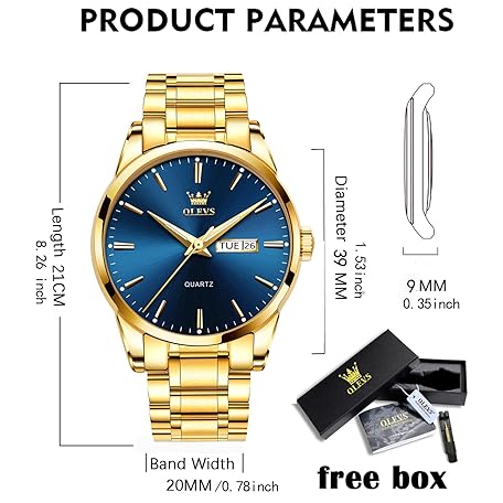 Sản phẩm OLEVS Classic Men Watches with Date,Stainless Steel Man Watch with Date, Bussiness Watches for Men,Luminous Quartz Mens Watches Black/White/Blue/Gold, Waterproof Male Watch with Week đang được bán với giá ưu đãi là $35.9373 tại nước Mỹ.