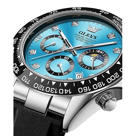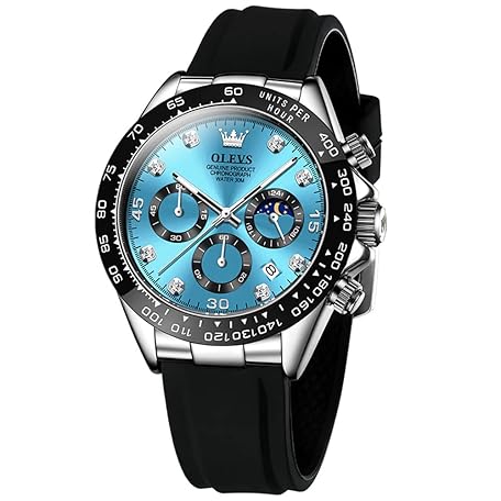 Sản phẩm OLEVS Men Analog Quartz Waterproof Watches Multifunction Chronograph Diamond Moon Phase Luminous Silicone Band Wrist Watches đang được bán với giá ưu đãi là $51.2409 tại nước Mỹ.