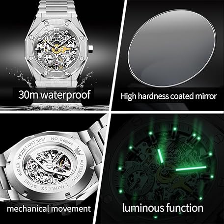Sản phẩm OLEVS Men Automatic Skeleton Mechanical Watch Stainless Steel Luxury Classic Business Waterproof Luminous Wristwatch đang được bán với giá ưu đãi là $183.12 tại nước Mỹ.