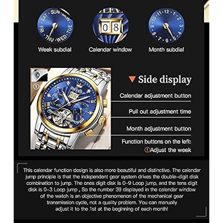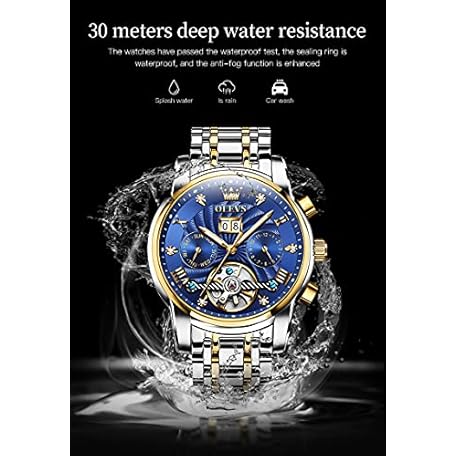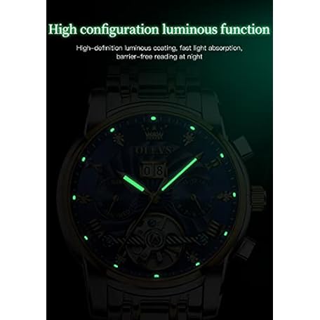 Sản phẩm OLEVS Men Automatic Watch Skeleton 5 Hands Mechanical Classic Luxury Multi Calendar Stainless Steel Waterproof Wrist Watch for Men đang được bán với giá ưu đãi là $160.23 tại nước Mỹ.