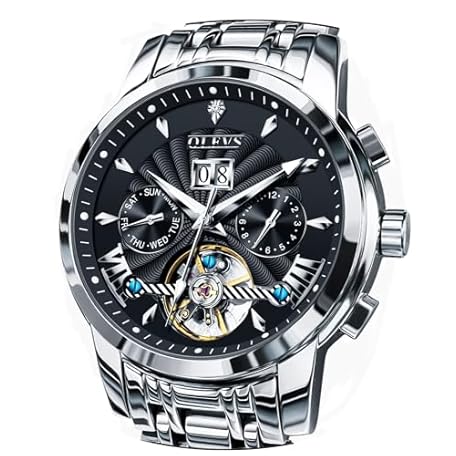 Sản phẩm OLEVS Men Automatic Watch Stainless Steel Skeleton Mechanical Date Calendar Luxury Classic Business Waterproof Luminous Wrist Watches đang được bán với giá ưu đãi là $160.23 tại nước Mỹ.