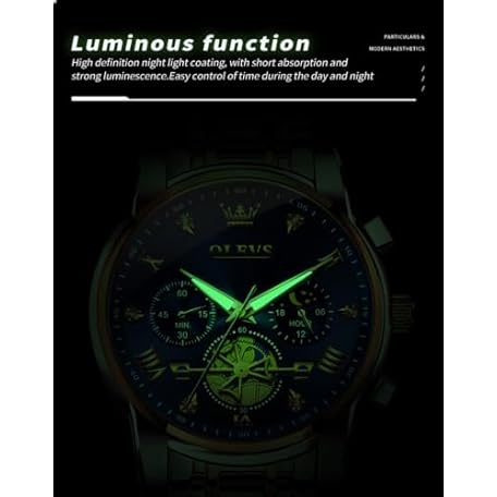 Thương hiệu OLEVS là cái tên nổi tiếng được rất nhiều khách hàng trên thế giới chọn lựa. Với kiểu dáng đẹp mắt, sang trọng, sản phẩm OLEVS Men Skeleton Watches Stainless Steel Analog Quartz Moon Phase Male Watch, Diamond Multi Calendar Chronograph Watch,Waterproof Wrist Watch for Men là sự lựa chọn hoàn hảo nếu bạn đang tìm mua một món cho riêng mình.