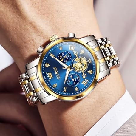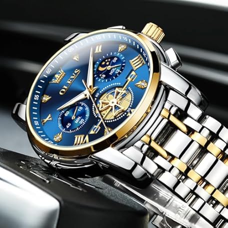 Sản phẩm OLEVS Men Skeleton Watches Stainless Steel Analog Quartz Moon Phase Male Watch, Diamond Multi Calendar Chronograph Watch,Waterproof Wrist Watch for Men đang được bán với giá ưu đãi là $47.415 tại nước Mỹ.