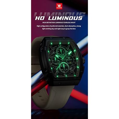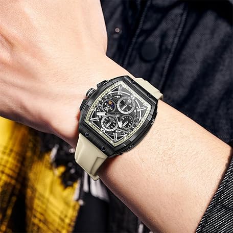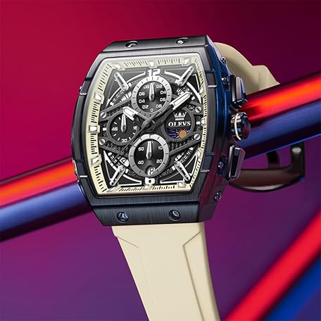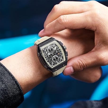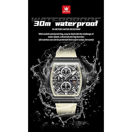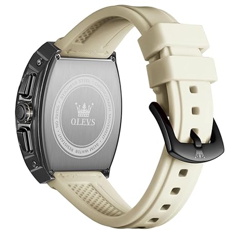 OLEVS Men Watches Business Dress Chronograph Big Square Quartz Analog Male Watch Silicone Strap Waterproof Date Gift Mens Wrsit Watch Silver