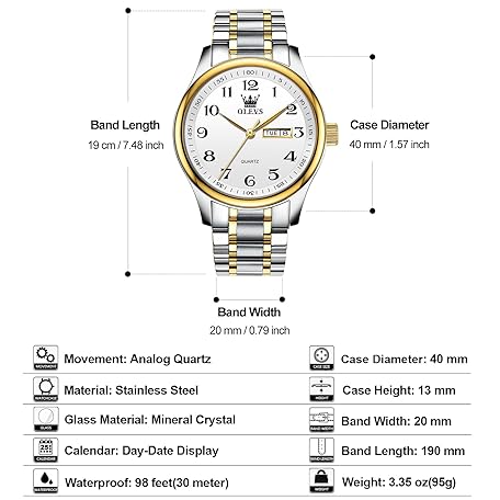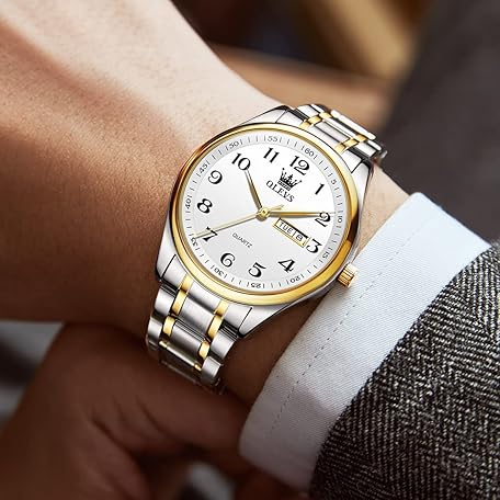 Sản phẩm OLEVS Men's Luxury Stainless Steel Watch, Big Face Gold Silver Two Tone Three Hand Analog Quartz Watch, Easy to Read Waterproof Luminous Day Date Wrist Watches for Men đang được bán với giá ưu đãi là $46.6193 tại nước Mỹ.