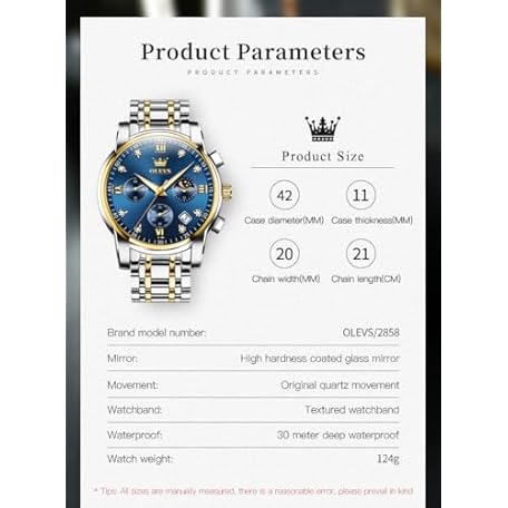 Thương hiệu OLEVS là cái tên nổi tiếng được rất nhiều khách hàng trên thế giới chọn lựa. Với kiểu dáng đẹp mắt, sang trọng, sản phẩm OLEVS Men's Luxury Watch Waterproof Luminous Easy Read Chronograph Watches Full Gold/White Dail/Black Face with Calendar Wristwatch là sự lựa chọn hoàn hảo nếu bạn đang tìm mua một món cho riêng mình.
