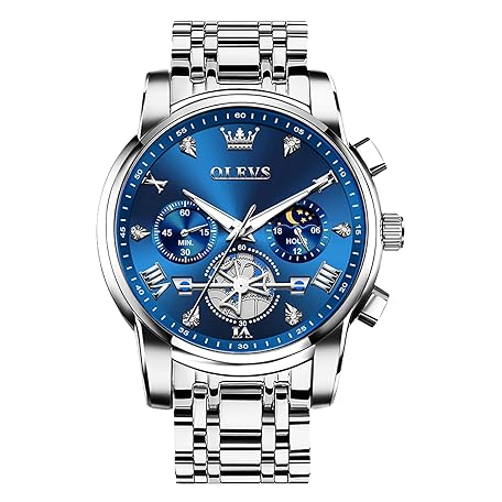 Sản phẩm OLEVS Men's Stainless Steel Chronograph Watch, Large Face Easy to Read Roman Numerals Diamond Accented Analog Dress Watches for Men, Elegant Waterproof Luminous Male Quartz Wristwatch đang được bán với giá ưu đãi là $38.1718 tại nước Mỹ.