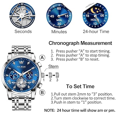 Thông tin sản phẩm OLEVS Men's Stainless Steel Chronograph Watch, Large Face Easy to Read Roman Numerals Diamond Accented Analog Dress Watches for Men, Elegant Waterproof Luminous Male Quartz Wristwatch
