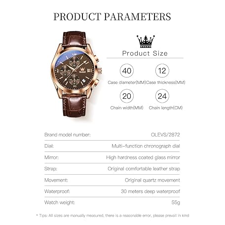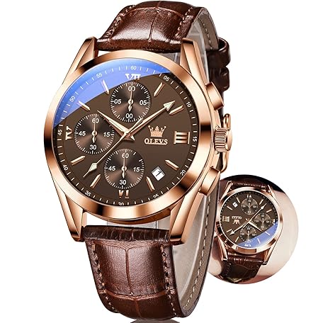 Thông tin sản phẩm OLEVS Men's Watches Brown Leather with Date,Casual Watches for Men,Large Face Watches Men,Chronograph Mens Watch,Sport Waterproof Business Dress Analog Quartz Men's Wrist Watches Reloj De Hombre