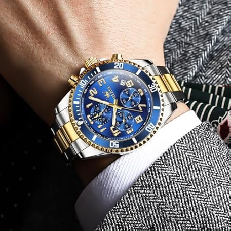 Sản phẩm OLEVS Mens Watches Chronograph Luxury Dress Moon Phase Two Tone Stainless Steel Waterproof Luminous Business Calendar Wrist Watch đang được bán với giá ưu đãi là $46.6193 tại nước Mỹ.