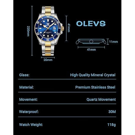 Thương hiệu OLEVS là cái tên nổi tiếng được rất nhiều khách hàng trên thế giới chọn lựa. Với kiểu dáng đẹp mắt, sang trọng, sản phẩm OLEVS Men's Watches with Date, Premium Gold and Silver Stainless Steel Analog Watches for Men, Classic Rotatable Bezel Men's Cuff Watches, Blue/Green/Black Dial là sự lựa chọn hoàn hảo nếu bạn đang tìm mua một món cho riêng mình.