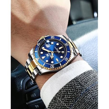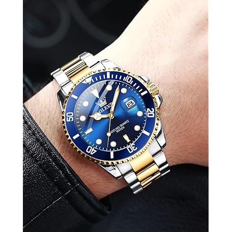 Thông tin sản phẩm OLEVS Men's Watches with Date, Premium Gold and Silver Stainless Steel Analog Watches for Men, Classic Rotatable Bezel Men's Cuff Watches, Blue/Green/Black Dial