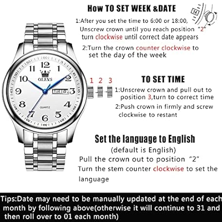 Sản phẩm OLEVS Mens Watches,Big Dial Watches for Men,Day Date Watches Men,Mens Waterproof Watches,Mens Stainless Steel Watches,Analog Quartz Men's Watches,Relojes para Hombre đang được bán với giá ưu đãi là $46.6193 tại nước Mỹ.