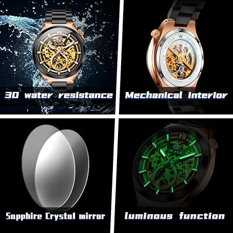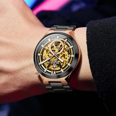 Sản phẩm OLEVS Skeleton Watch for Men Automatic Self Winding Mechanical Sapphire Crystal Stainless Steel 3AT Waterproof Luminous Business Men Wrist Watch đang được bán với giá ưu đãi là $183.12 tại nước Mỹ.