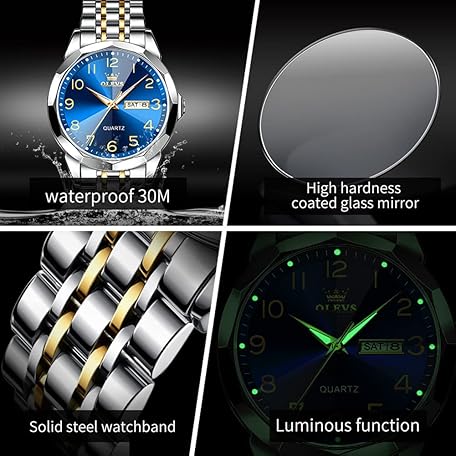Sản phẩm OLEVS Watch for Men Luxury Dress Analog Quartz Stainless Steel Waterproof Luminous Date Diamond Business Two Tone Casual Wrist Watch đang được bán với giá ưu đãi là $46.6193 tại nước Mỹ.