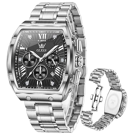 OLEVS Watch Men Luxury Dress Waterproof Casual Nice Big Face Original Male Wrist Watch for Men Stainless Steel Analog Adjustable Mens Watches Classic Business Fashion Square Reloj para Hombre