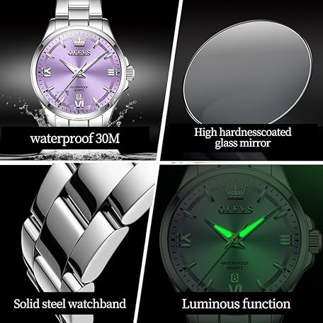 OLEVS Watches for Women Luxury Elegant Stainless Steel Waterproof Luminous Diamond Women's Fashion Watch Ladies Watches for Small Wrists