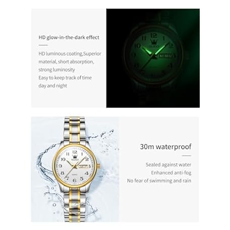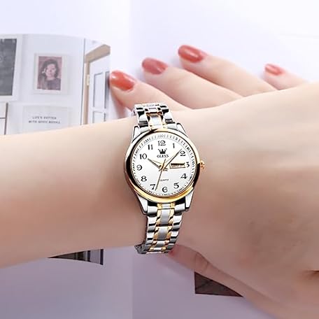 Thông tin sản phẩm OLEVS Women Watches Date and Day,Ladies Watches with Silver Gold Stainless Steel,Elegent Female for Small Wrist Watch(White/Black/Blue/Gold Face)