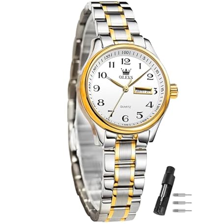 Sản phẩm OLEVS Women Watches Date and Day,Ladies Watches with Silver Gold Stainless Steel,Elegent Female for Small Wrist Watch(White/Black/Blue/Gold Face) đang được bán với giá ưu đãi là $37.2998 tại nước Mỹ.