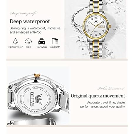 Sản phẩm OLEVS Women Watches Gold Silver Stainless Steel Waterproof Analog Large Easy Reader Day Date Ladies Wrist Watches đang được bán với giá ưu đãi là $46.6193 tại nước Mỹ.