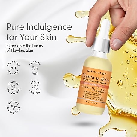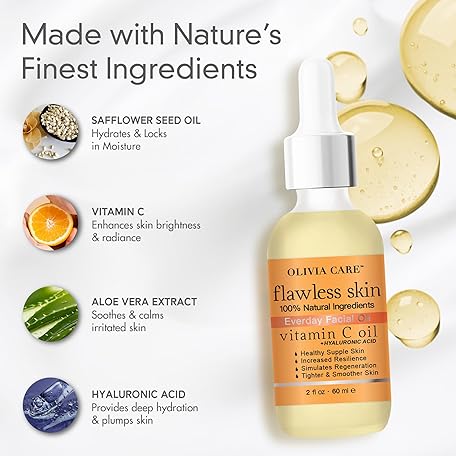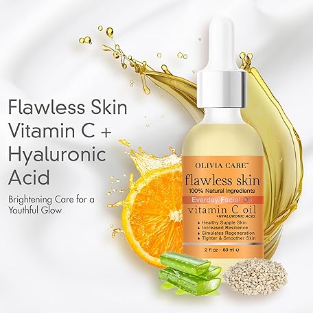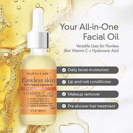 Thông tin sản phẩm Olivia Care Vitamin C + Hyaluronic Acid Flawless Essential Facial Oil Acid 100% Natural, Reviving, Hydrating, Calming & Soothing. Stabilize & Retain Moisture 2 fl oz (Vitamin C)