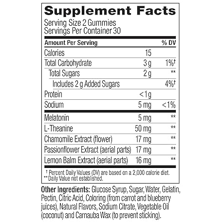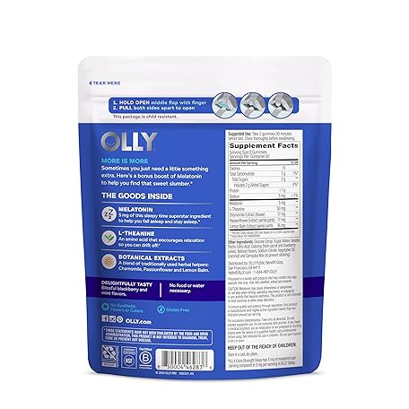Thông tin sản phẩm OLLY Extra Strength Sleep, 5 mg Melatonin L-Theanine, Chamomile and Botanicals - 60ct Pouch