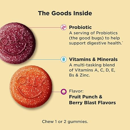 Thông tin sản phẩm OLLY Kids Multivitamin & Probiotic Gummy, Digestive Support, Vitamins A, D, C, E, B, Zinc, Chewable Supplement, Berry Flavor, 60 day supply - 120 Count