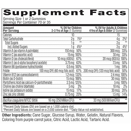 Thông tin sản phẩm OLLY Kids Multivitamin + Probiotic Gummy, Vitamins A, C, D, E, B, Zinc, Probiotics, Chewable Supplement, Berry Flavor, 70 Count (3 Pack)