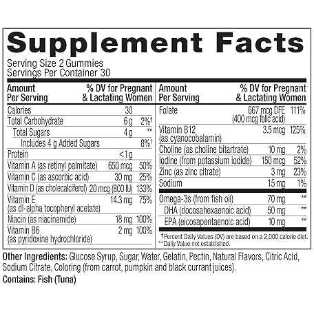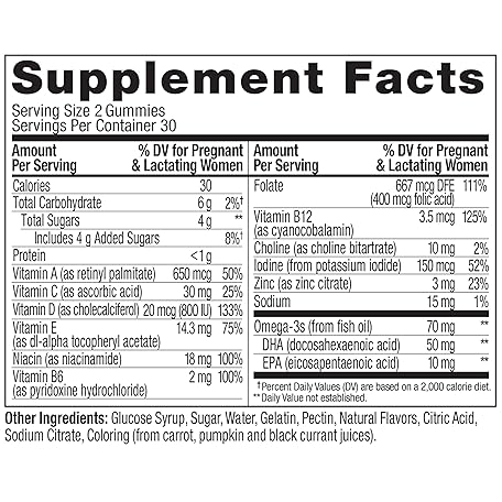 Thông tin sản phẩm OLLY Prenatal Multivitamin Gummy, Supports Healthy Growth and Brain Development, Folic Acid, Vitamin D, Omega 3 DHA, Chewable Supplement, Citrus Berry Flavor, 30 Day Supply - 60 Count