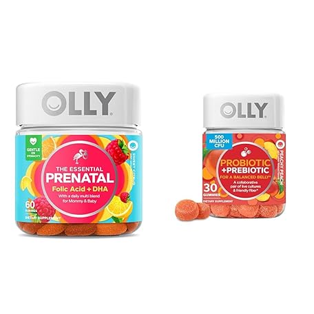 Thông tin sản phẩm OLLY The Essential Prenatal Gummy Multivitamin, 30 Day Supply (Gummies), Sweet, Folic Acid & Probiotic + Prebiotic Gummy, Digestive Support and Gut Health, 500 Million CFUs, Fiber