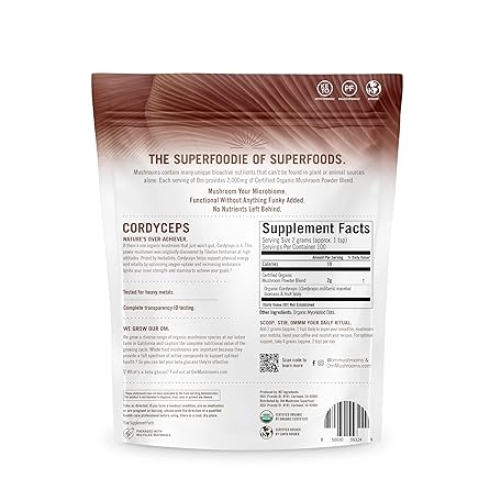 Thông tin sản phẩm OM Mushroom Cordyceps Powder 7.05 oz (100 Servings) – Organic, Vegan, Non-GMO, Gluten-Free – Energy, Stamina & Endurance Support – Adaptogenic Superfood for Sports, Performance, Smoothies & Tea