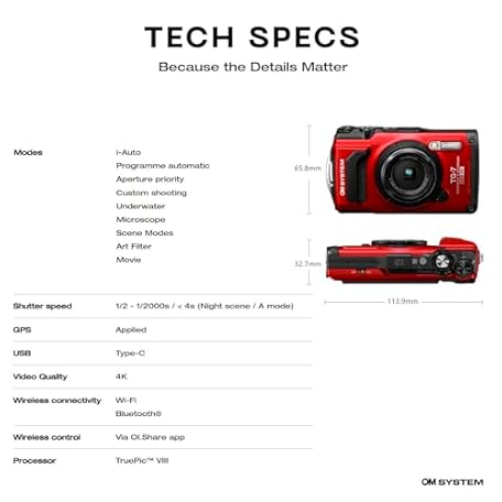 Thông tin sản phẩm OM System OLYMPUS Tough TG-7 Red Underwater Camera, Waterproof, Freeze Proof, High Resolution Bright, 4K Video 44x Macro Shooting (Successor Olympus TG-6)