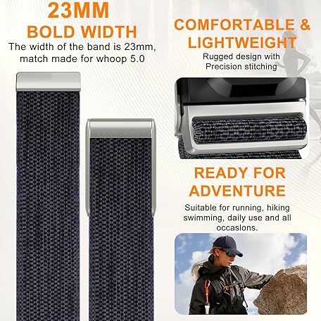 Thông tin sản phẩm omee Nylon Sport Band Compatible with Whoop 5.0 Bands One, Peak and Life, Breathable Nylon Adjustable Waterproof Replacement Wristbands Straps for Whoop Band 5.0 – Not Compatible with Gen 4