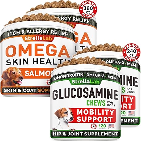Sản phẩm Omega 3 + Glucosamine Dogs Bundle - Allergy & Itch Relief Skin&Coat Supplement - Omega 3 & Pumpkin + Chondroitin, MSM - Dry Itchy Skin, Hot Spots Treatment + Hip & Joint Care - 600 Chews - Made in USA đang được bán với giá ưu đãi là $92.2031 tại nước Mỹ.
