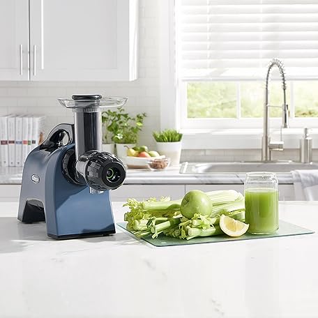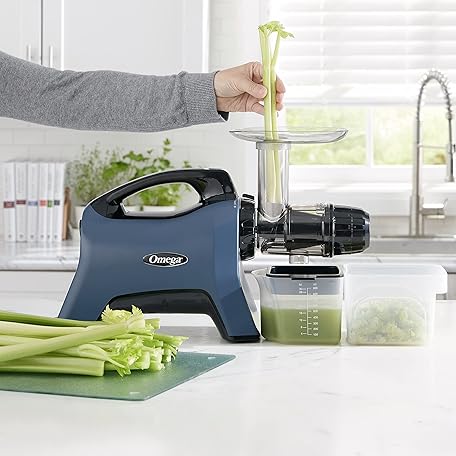 Thông tin sản phẩm Omega Celery Juicer and Nutrition System Masticating Juicer, Cold Press Juicer Machine For Celery with Adjustable Dial, 200-Watt, Blue