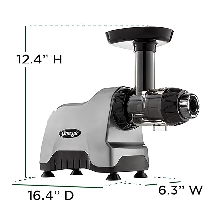 Thông tin sản phẩm Omega Compact Cold Press Juicer Machine, Vegetable and Fruit Juice Extractor and Nutrition System Makes Nut Milks Baby Food and Sorbets, Triple-Stage 80-RPM Slow Masticating Juicer, 200-Watts, Gray
