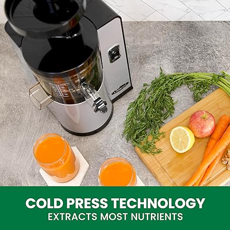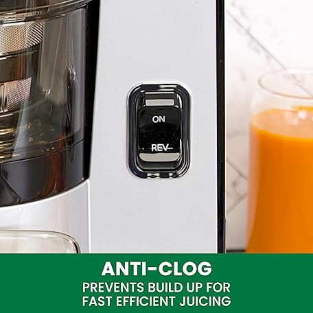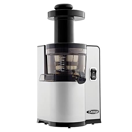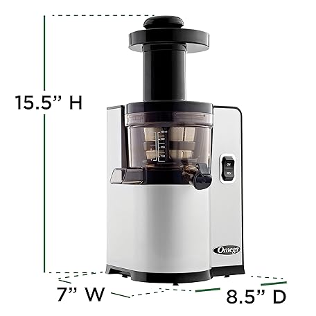 Thông tin sản phẩm Omega Juicer Cold Press Vertical 43 RPM Slow Masticating Compact Juice Extractor for Fruits and Vegetables Quiet Operation with 3 Stage Auger Automatic Pulp Ejection and No-Drip Tap, 150-Watts, Silver