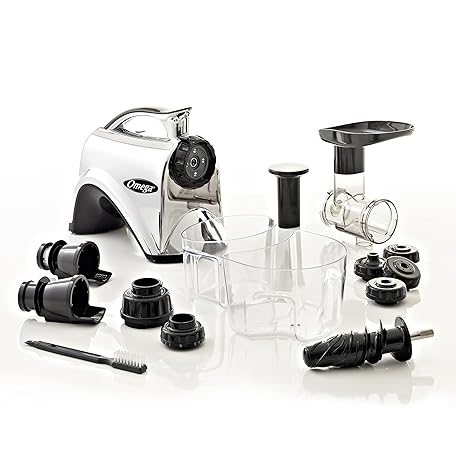 Sản phẩm Omega Juicer Premium Vegetable and Fruit Juice Extractor and Nutrition System Makes Nut Milks Baby Food and Sorbets, Adjustable Pressure Settings 80-RPM Slow Masticating Juicer, 150-Watts, Silver đang được bán với giá ưu đãi là $397.8391 tại nước Mỹ.